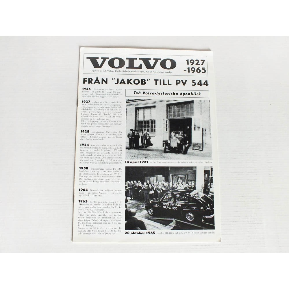 Буклет "Från "Jacob" till PV 544" - история автомобилей Volvo с 1927 по 1965 годы. Оригинальное издание компании Volvo.